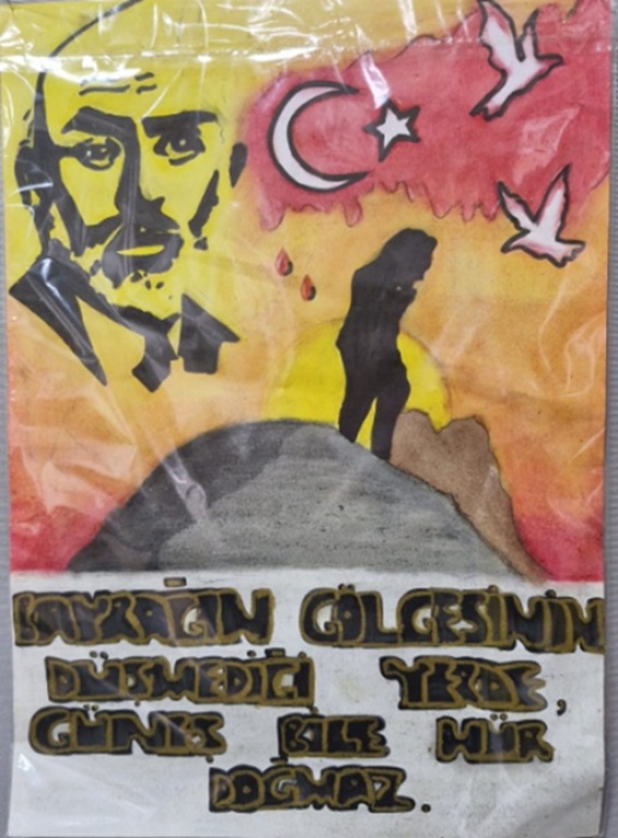 kelimeyi kullanarak cümle ve afiş oluşturmuştur. Okulun en iyi cümlesi/afişi