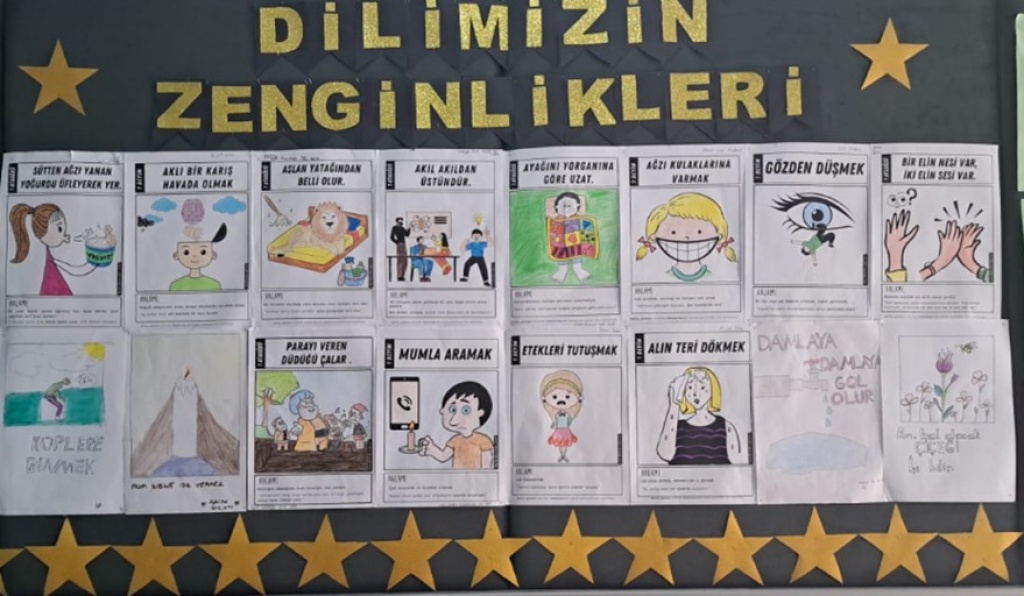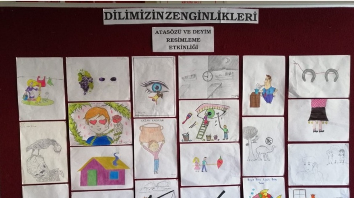 Tüm sınıflarda öğrencilerimiz Dilimizin Zenginlikleri isimli proje kapsamında, Şubat ayı eylem planı içerisinde yer alan ‘’Deyim ve Atasözlerini Resimleme" etkinliği yaptı. Öğrenciler, öğrendikleri atasözleri veya deyimleri resimleyerek anlamlandırdılar. Bu etkinlikler ile öğrencilerimiz deyim ve atasözlerinin anlamlarını eğlenceli bir şekilde öğrenirken kültürel mirasımıza da sahip çıktılar.
