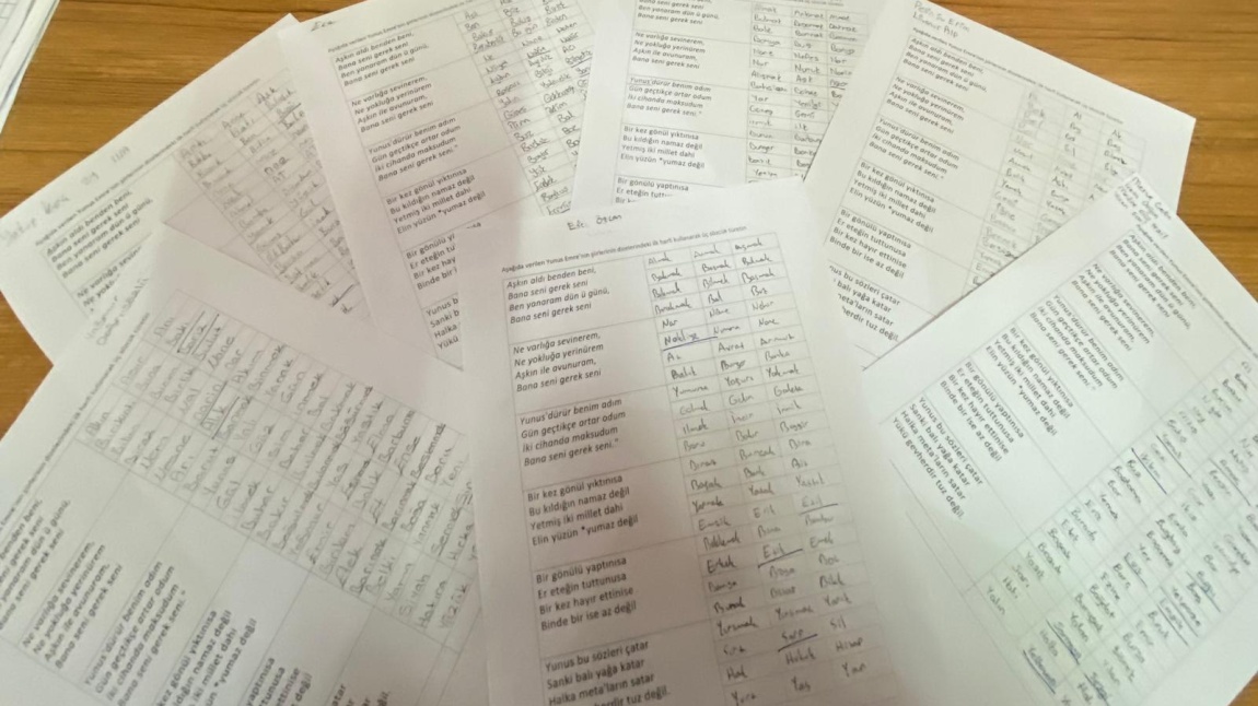 "Baş Harflerini Değiştir" etkinliği, Yunus Emre’nin şiirindeki kelimelerden yola çıkılarak yapılmıştır. Öğrenciler gruplar halinde ayrılarak şiirden öğrendikleri kelimeleri küçük kağıtlara baştan aşağıya doğru sıralamıştır. Sıralanan kelimelerin baş harflerini alarak divandan yeni öğrendikleri kelimeleri yazmışlardır. Böylece kelime dağarcıklarını ve kelime türetme becerilerini geliştirmelerine yardımcı olan eğlenceli ve etkili bir etkinlik yapılmıştır.