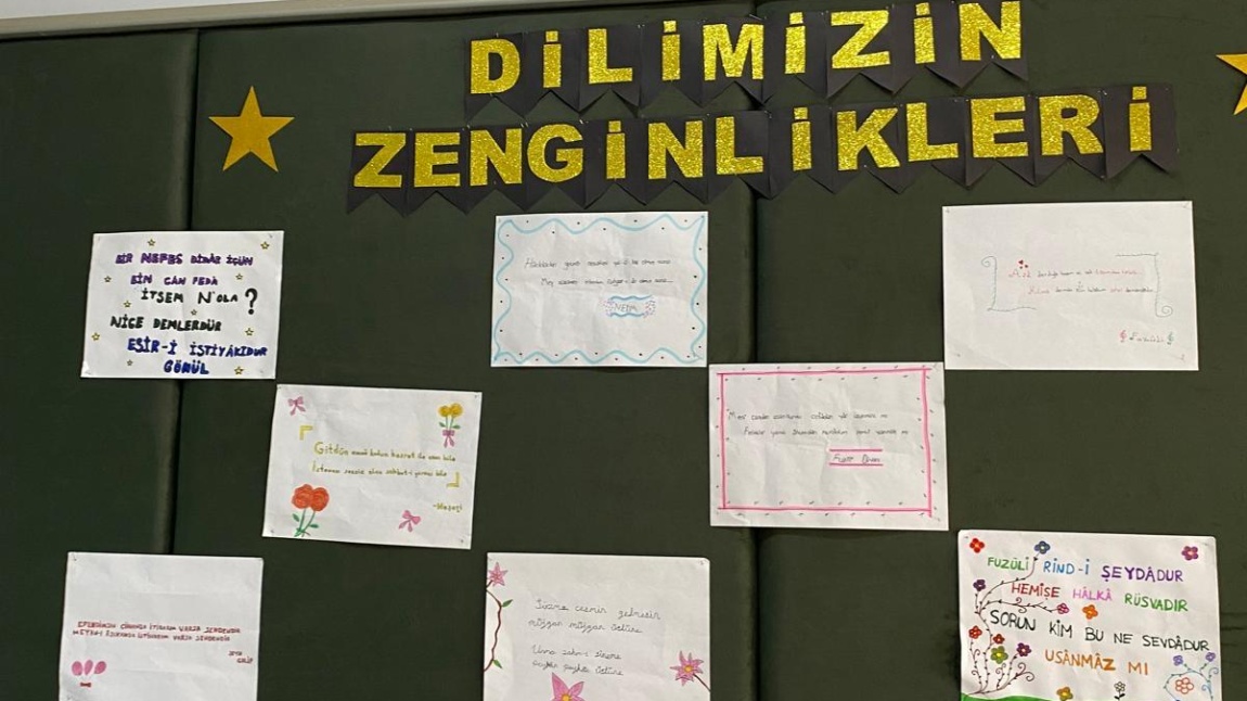 Dilimizin Zenginlikleri projesi kapsamında , tüm sınıflarda Duvar Yazısı Çalışmaları etkinliği yapılmış olup, okulumuzda duvar yazılarından oluşan bir pano hazırlanmıştır.