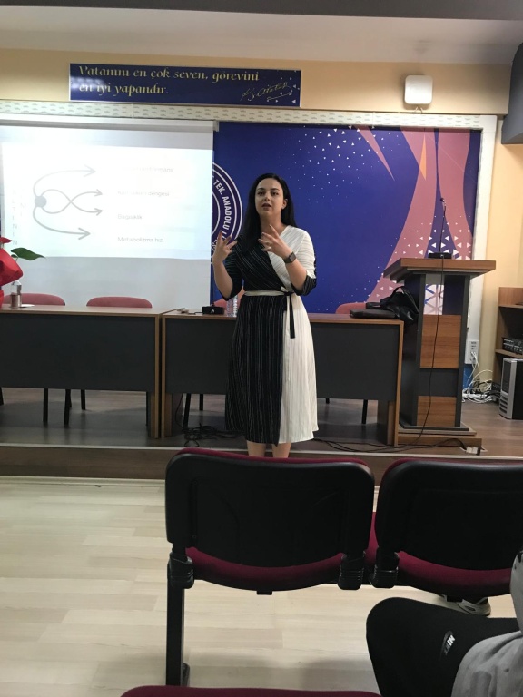 Ayrıca, sağlıklı yaşamın yalnızca geçici diyetlerle değil; düzenli egzersiz, kaliteli uyku, doğru besin seçimi ve stres yönetimi gibi unsurlarla sürdürülebilir bir yaşam tarzına dönüşmesi gerektiğini vurguladı. Öğrencilerimize sağlıklı atıştırmalık örnekleri ve günlük beslenme planları sunarak, teorik bilgiyi pratik önerilerle destekledi.